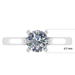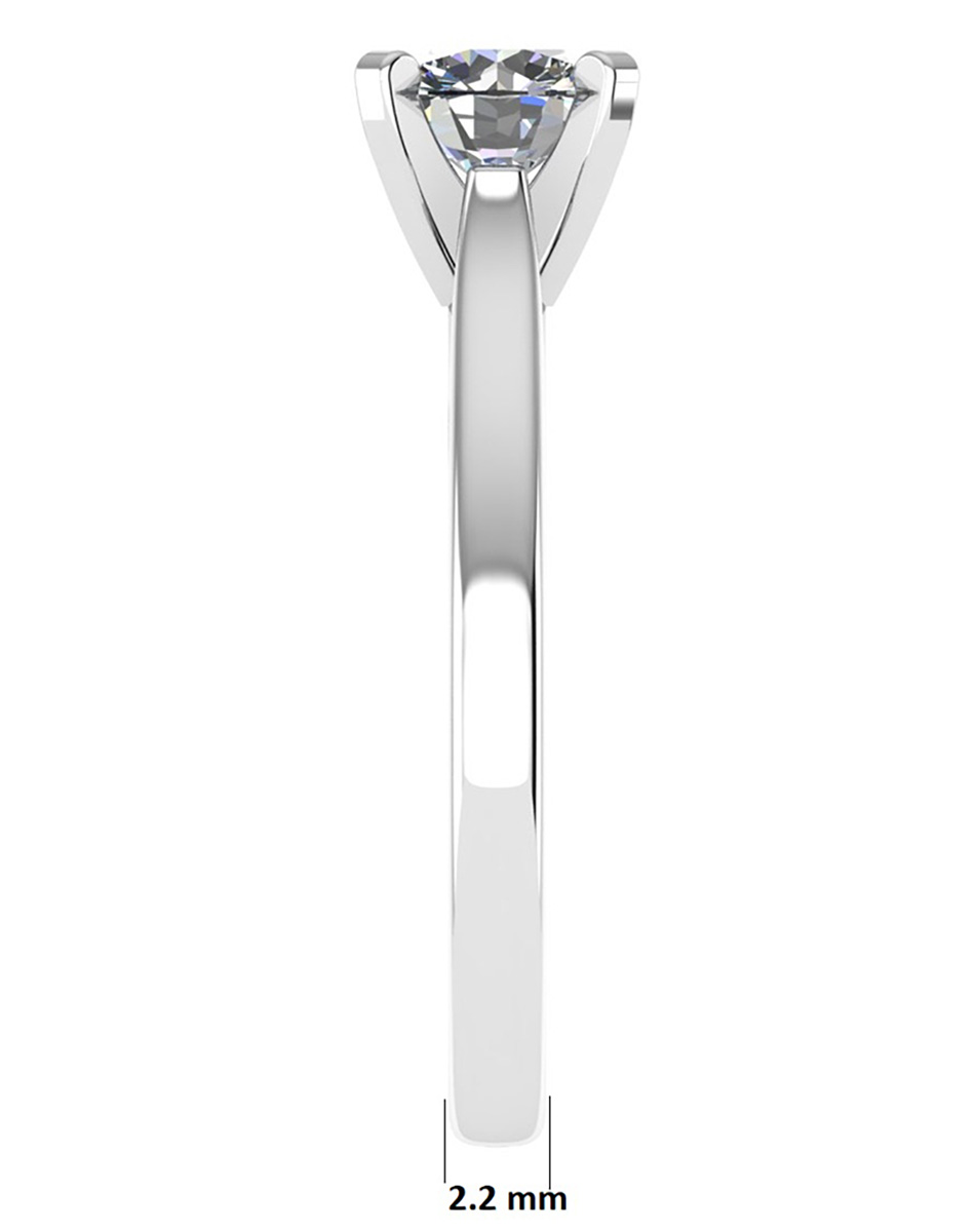 Denna eleganta ring är prydd med en briljantslipad diamant på 1,0 carat, infattad i en klassisk fyrklofattning som framhäver stenens naturliga briljans och elegans. Skenan har en avsmalnande design med en bredd på 6,7 mm vid den bredaste delen och smalnar av till 2,2 mm vid basen, vilket skapar en modern och balanserad profil. Höjden från fingret till toppen av diamanten är 7 mm, och ringen har en innerdiameter på 17,5 mm. Ringen är tillverkad i 18 karat guld och väger totalt 3,5 gram, vilket säkerställer både hållbarhet och komfort.