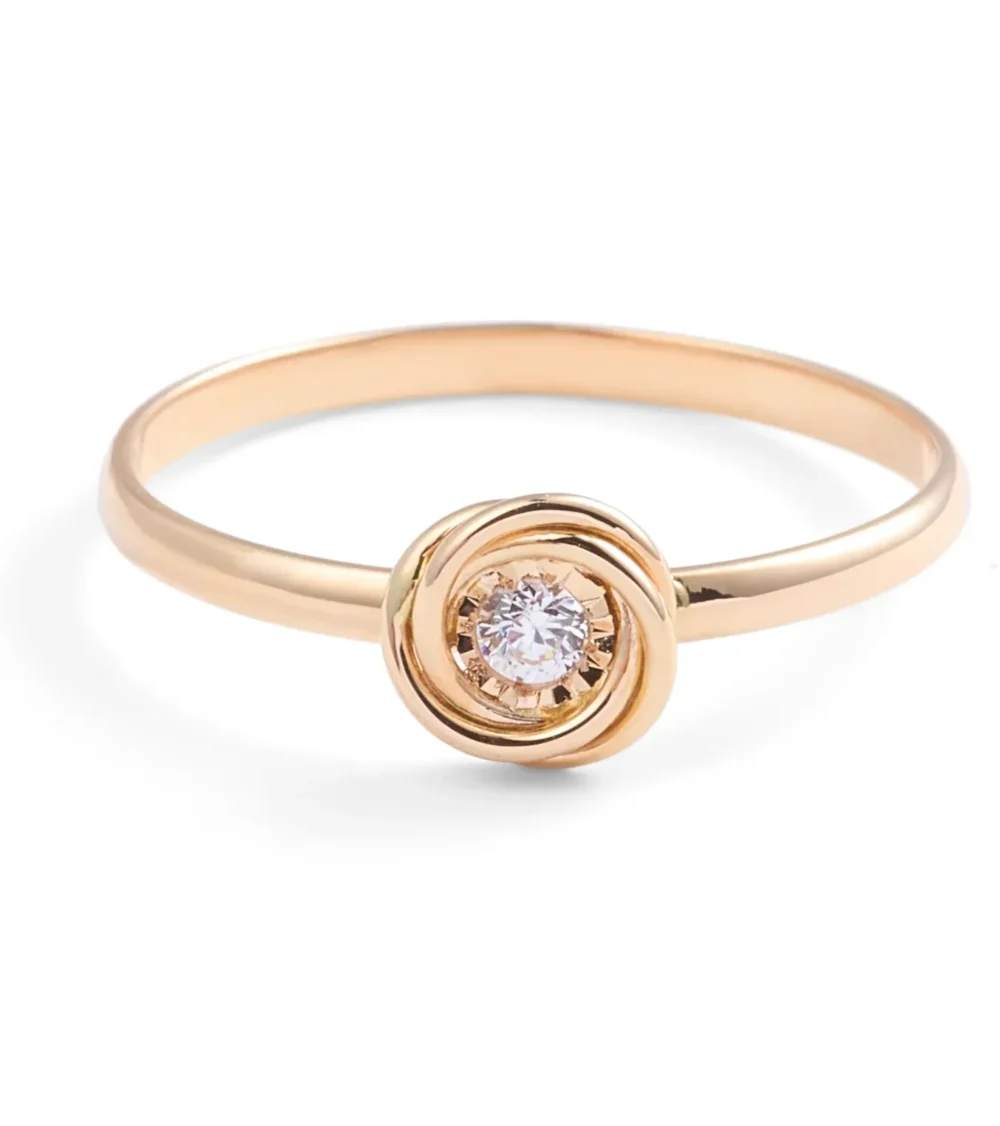 Denna vackra ring med en gnistrande labbodlad diamant på 0,10 carat är både elegant och symbolisk. Diamanten av högsta kvalitet (Top Wesselton VS) är omsluten av en kärleksknut i 18 karat roséguld, vilket gör ringen till en perfekt symbol för evig kärlek och stil. Den minimalistiska designen och lätta passformen gör denna ring till ett smycke som passar perfekt både till vardags och till speciella tillfällen. En idealisk gåva för någon speciell eller som ett uttryck för din egen unika stil.